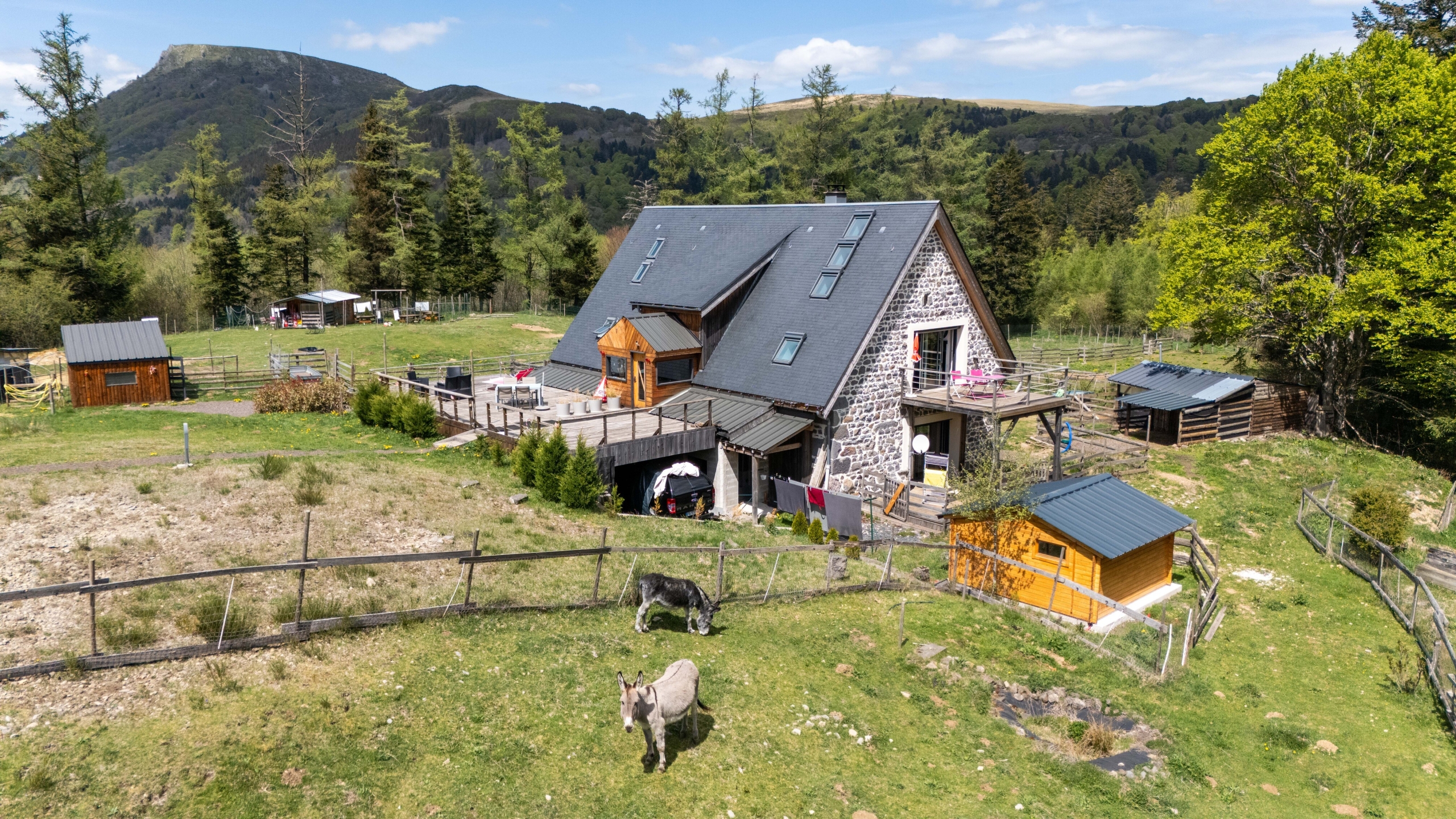 Le réseau Contact Immo 63 vous propose à 2km du centre du Mont-Dore, un domaine étendu sur 18 983m² vous offrant une vue à 360° sur le Parc Régional des volcans d’Auvergne. Le domaine comprend un ancien buron composé de 5 chambres, réparties entre une maison principale et deux appartements indépendants (un T2 et un T3) ainsi qu’un chalet/snack, des animaux et du matériel.
