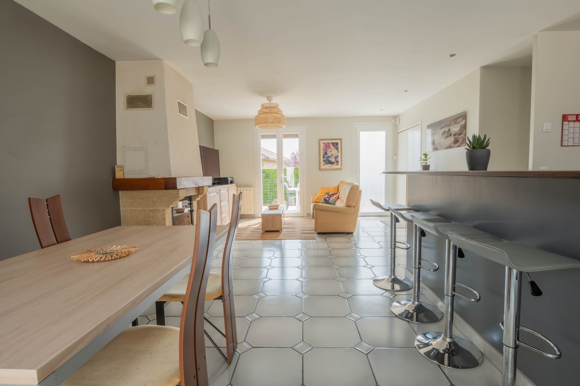 – une pièce de vie avec cuisine ouverte donnant sur terrasses